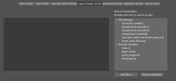 (1) Start GCode: Customized GCodes which will be executed at the start of a print job (after preheating extruders and the heat bed).