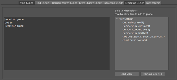 (6) Repetition GCode: The GCode which will be printed repeatedly. This only works for the belt printer.