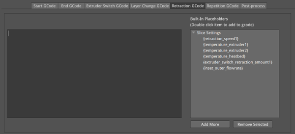 (5) Retraction GCode: The GCode which will be executed when the filament retracts.