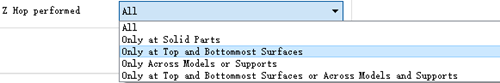 Only Across Models or Supports with this option selected, Z Hop will be performed only for avoiding collision when moving from the model to the supports or from the supports to the model.