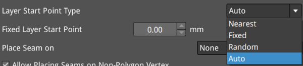 Layer Start Point Type: The type of position where the nozzle starts moving on each layer.