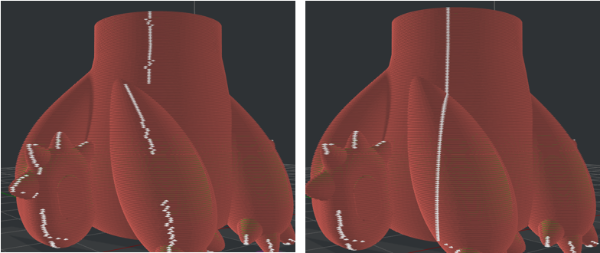 Avoid Placing Seams on Overhangs: With this function enabled, ideaMaker will place seams of each layer away from the overhangs to avoid curling and wrapping at the edges. This function is enabled by default.