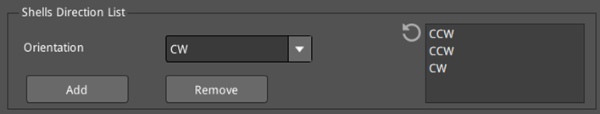 If CCW, CCW and CW are added to the Shells Direction List, as shown in Figure 5, the first and second layers will be printed in a counterclockwise direction and the third layer will be printed in a clockwise direction; Then the fourth and fifth layers will also be printed in a counterclockwise direction and the sixth layer will also be printed in a clockwise direction, and so on until printing is complete. If only CCW and CW are added to the list, the layers will be printed alternately in a counterclockwise and clockwise direction until printing is completed.
