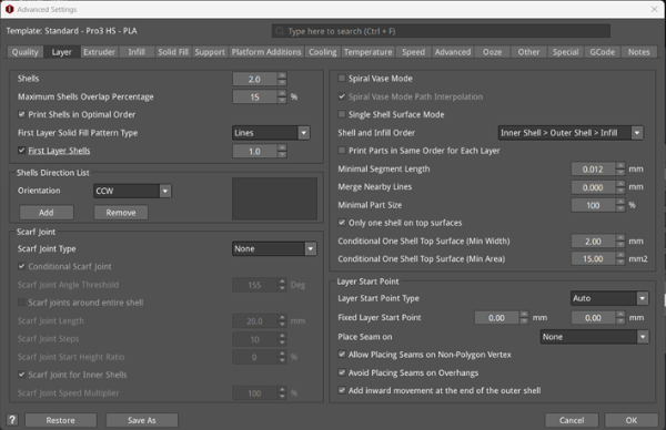 Scarf Joint for Inner Shells: With this function enabled, the scarf joints will also apply to the inner shells.