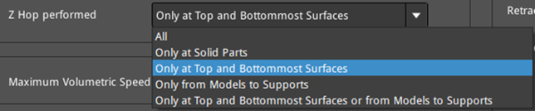 Ø All: With this option selected, Z Hop will be performed anywhere during retraction.
