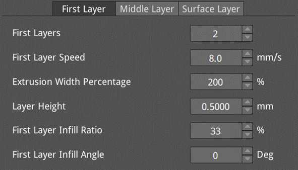 Note: Please don’t set the value of Second Layer Z Lift to be too large, otherwise it may cause excessively big gaps between the first layer and the second layer.