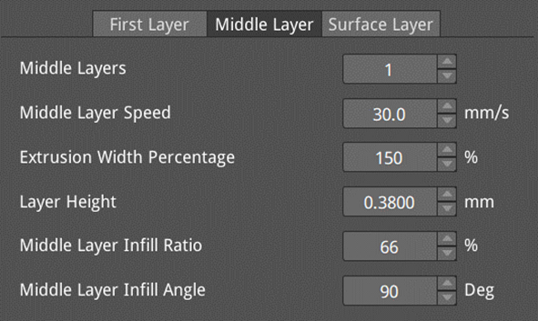 Middle Layer Speed: The printing speed for the middle layers of the raft.