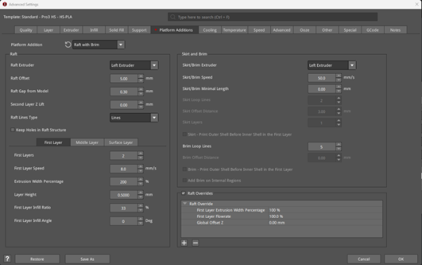 Surface Layer Speed: The printing speed for the surface layers of the raft.