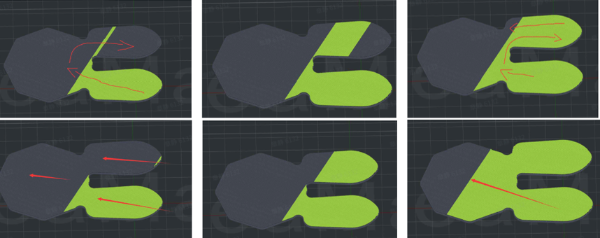 Figure 10: Comparison of printing before (upper three figures) and after (lower three figures) the Raft Surface Monotonic Order is enabled.