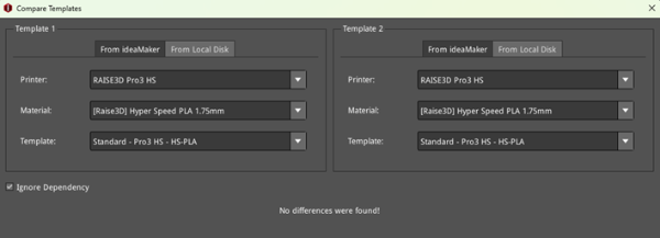Ignore Dependency: With this function enabled, all the different settings will be displayed, regardless of the dependencies between templates.