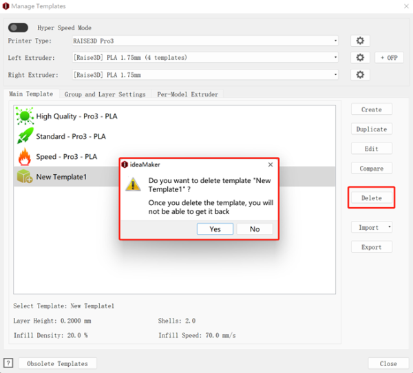 Note: delete function only work for the template, which was added by Create or Duplicate or Import, the default templates cannot be deleted.