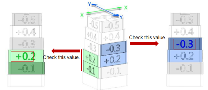 In the case above, the values are: X Offset = + 0.2mm, Y Offset = -0.3mm.