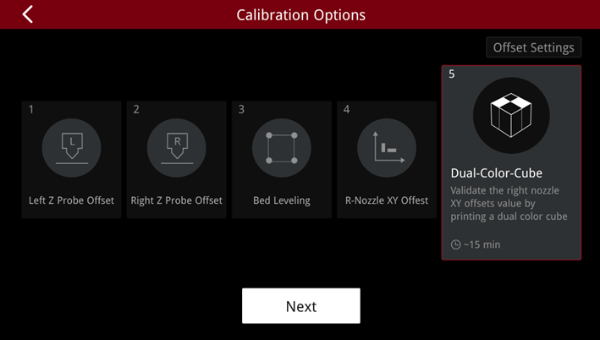 Choose Dual-Color-Cube, and then click the Next button to print the calibration model, as shown in Figure 10.