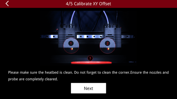 Make sure the build plate, nozzles, and probes are clean. Then click the Next button, as shown in Figure 6.