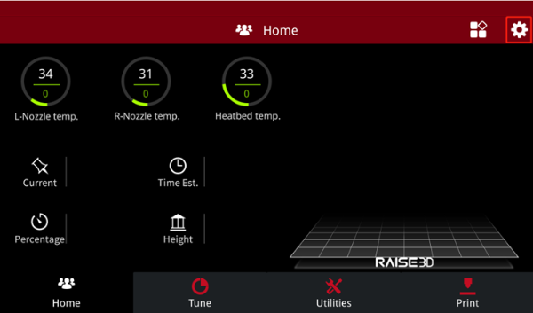 Power on the printer. Click the setting button, as shown in Figure 1.