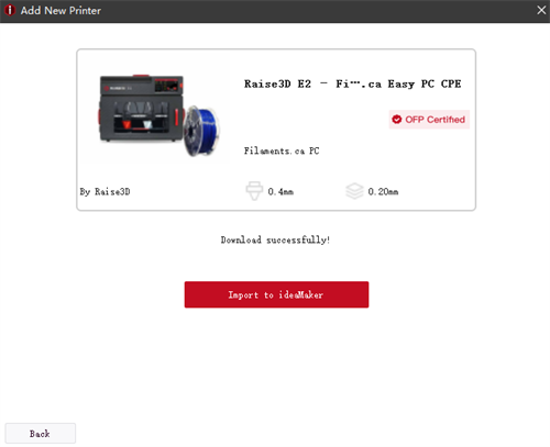 Step 4:Import the printer’s profile to ideaMaker as shown in Figure 4.